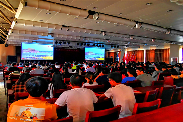 2019年10月1日上午10時,學(xué)院黨委宣傳部、團委組織師生300余人,在交通樓A453多功廳集中收看了中華人民共和國成立70周年慶祝大會直播,共同祝福祖國母親明天更好。有感盛世國慶,