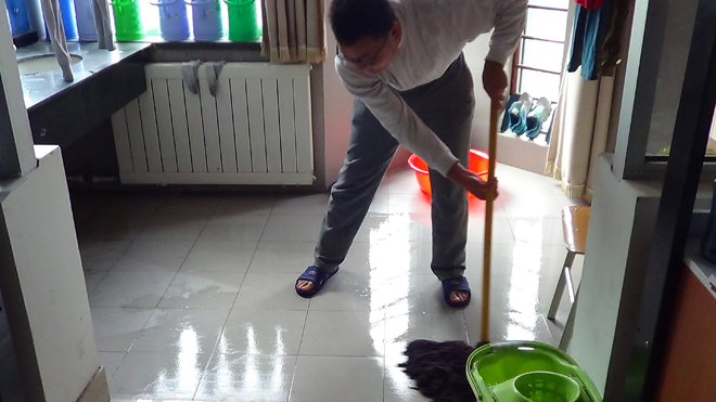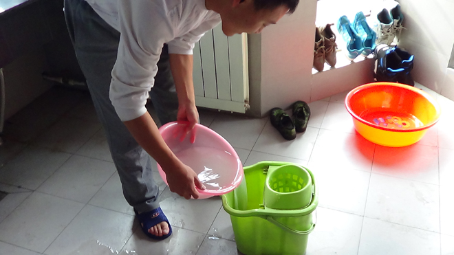 一等獎 作品名稱:一水多用 作品簡介:現(xiàn)在水資源嚴重短缺,我們應該學會節(jié)約用水,最實用簡單的方法就是一水多用,這組照片是一個男生在宿舍的用水情況,他用一盆水洗頭,洗拖布打掃宿舍,最后才將一盆水倒掉。我們應該向他學習,學會一水多用。 土木1302班 楊蕓蕓 |